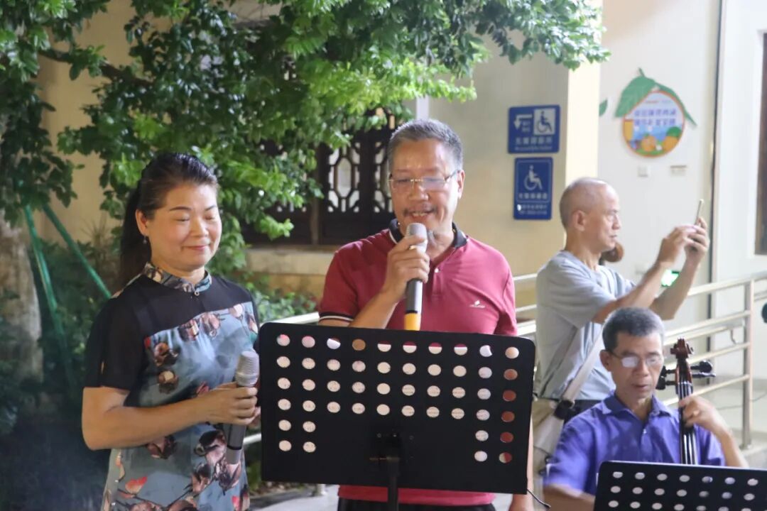 “夜市”开启,邻里街坊怎么反馈? 一起来听听 ↓↓↓ “时代乐韵”乐团负责人黎陈邦:“我们成员大多数是老人,大家都很感兴趣。今晚心情很好,大家为了演出,排练也很用心。非常感谢实践中心提供舞台,让我们在夜间可以有机会尽情表演,充实我们的夜间生活,让我们的周末更加有声有色!” 市民甄先生:“这个活动举办得不错。我在附近散步,被歌声吸引过来。听工作人员介绍,感兴趣的市民都可以预约上台演唱,这次我没准备好,下次我会约上好友一起上台唱歌。”